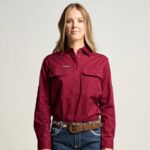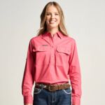 SOMERSET | Womens Half Button Long Sleeve Work Shirt - Black OBCWWS001-BLK